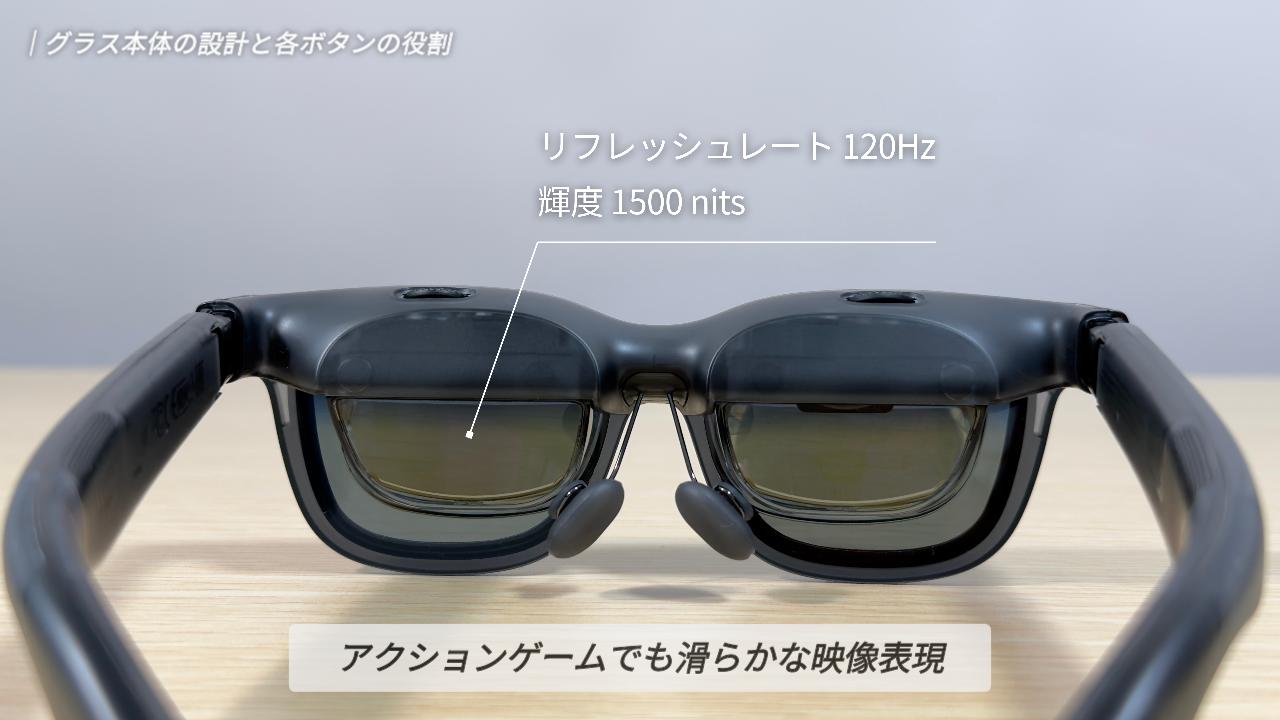 映像の要となるレンズには、ソニー製の最新マイクロ有機ELパネルを採用。解像度は、一般的なフルHDよりも縦に表示領域が広い「1920×1200ピクセル」。4K解像度ではありませんが、独自の光学処理によって、それに迫る鮮明さを実現しているとメーカーは謳っています。