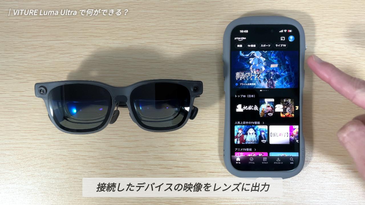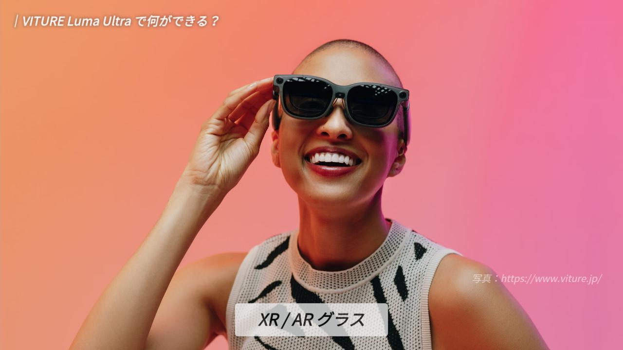 VITURE Luma Ultraは、サングラスの形状をした「XR型スマートグラス」です。このグラスを装着するだけで、あなたの目の前の空間に、152インチ相当の大画面が現れます。