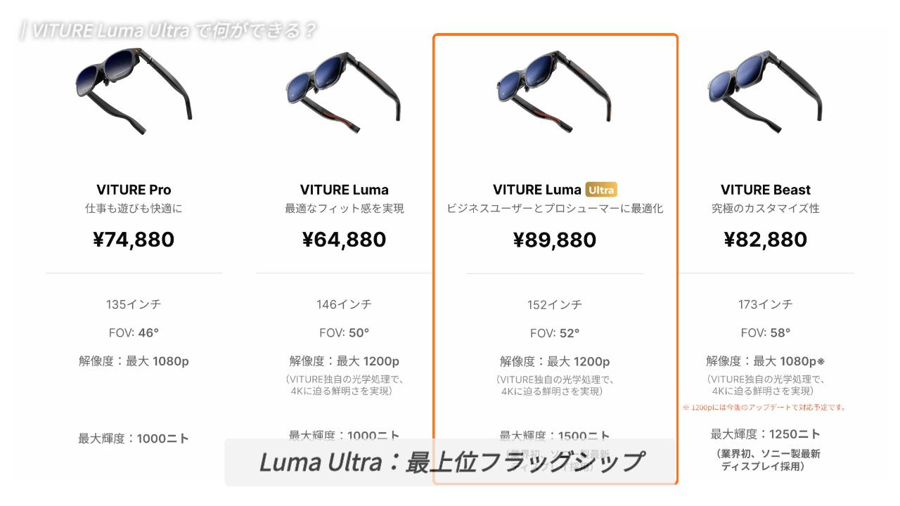現在VITUREからは、エントリーモデルのLumaや、カスタマイズ性の高いBeastなど複数のモデルが発売されていますが、今回ご紹介する「Luma Ultra」は、最新の機能と画質を備えた、2026年現在における最上位モデルという立ち位置です。