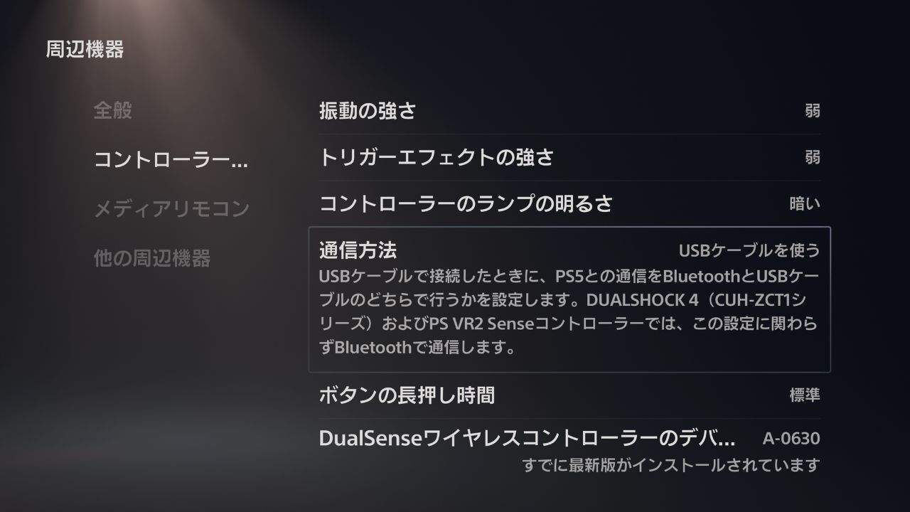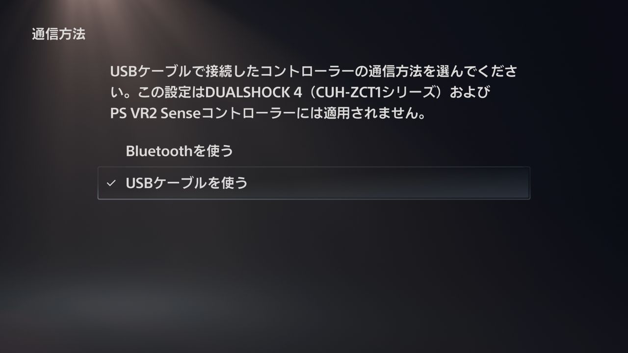 • 初回設定時にPS5本体の「通信方法」をUSBに変更する必要がある