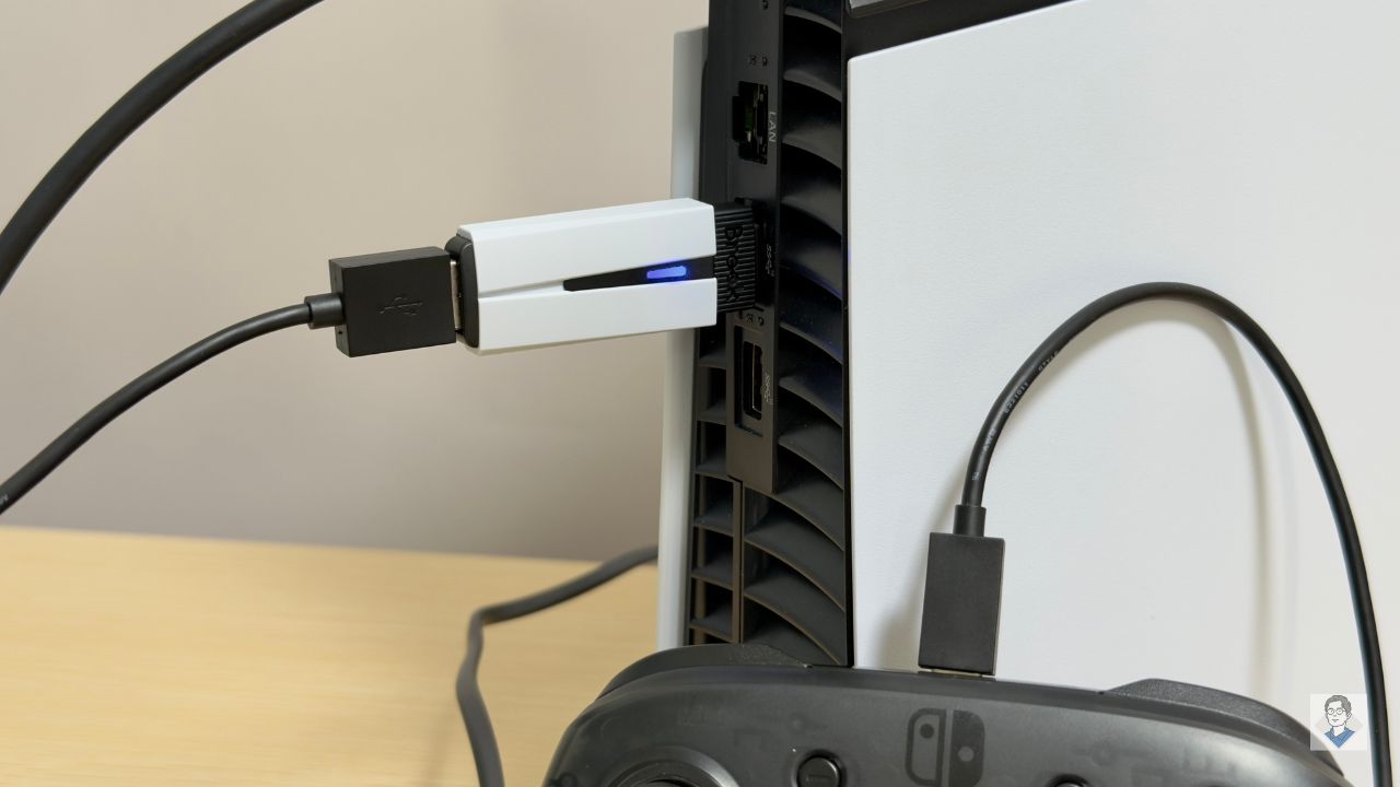 「コンバーター=設定が難しい」という先入観がありましたが、一度PS5側の設定を済ませてしまえば、あとはまさに「挿して、繋ぐだけ」。複雑な初期設定や、PCに繋いでアップデートを行う必要もなく(※)、プラグ&プレイですぐに使い始めることができました。