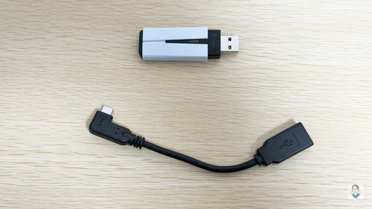 コンバーター本体の接続端子はType-Aなのですが、もしPS5 SlimやPS5 Proの前面にあるType-C端子に接続したい場合、このケーブルを介して接続する必要があります。
